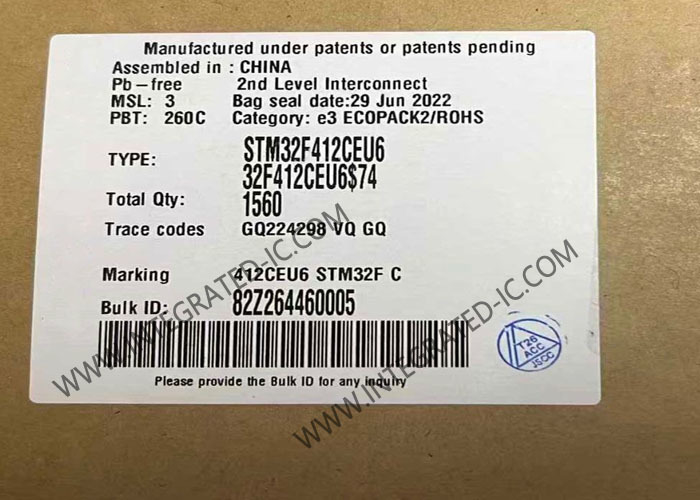 وحدة تحكم دقيقة STM32F412CEU6 MCU 100MHz 32Bit IC UFQFPN48 MCU مدمجة